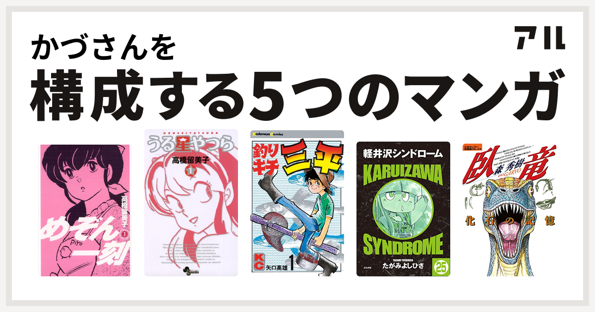かづさんを構成するマンガはめぞん一刻 うる星やつら 釣りキチ三平 軽井沢シンドローム 臥竜 がりょう 化石の記憶 私を構成する5つのマンガ アル